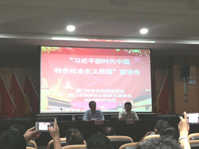 9月20日,我院校友会受邀参加厦门市社会组织促进会、厦门市两岸社会组织交流协会共同组织的“习近平新时代中国特色社会主义思想”宣讲会。