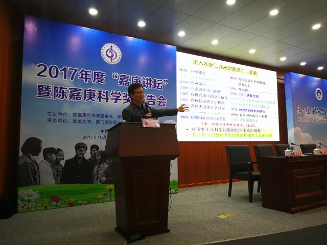 陈嘉庚科学奖是中国科学院给科学家的最高奖项,被誉为“中国的诺贝尔科学奖”。我院承办“嘉庚讲坛”暨陈嘉庚科学奖报告会,是缅怀嘉庚先生“忠贞爱国、倾资兴学”的丰功伟绩,更是继承和发扬嘉庚先生“重视教育、崇尚科学”的伟大精神。“嘉庚讲坛”是普及科学、交流学术和弘扬嘉庚精神的重要平台,通过本次报告会,我院师生了解了化学与生物学的前沿交叉领域的研究成果,增长了知识,开拓了眼界。