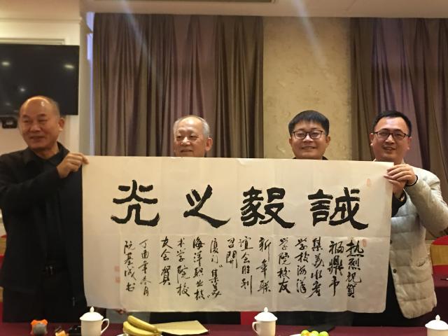 学院党委副书记兼校友会长汤忠民到会祝贺并讲话,副会长阮基成向福鼎校友分会赠送个人书法作品“诚毅之光”,40多位新老校友欢聚一堂,抚今忆旧,其乐融融。特别是有几位老校友,在读时曾经得到校主陈嘉庚先生的亲自教诲,更是感慨万千,激动不已。
