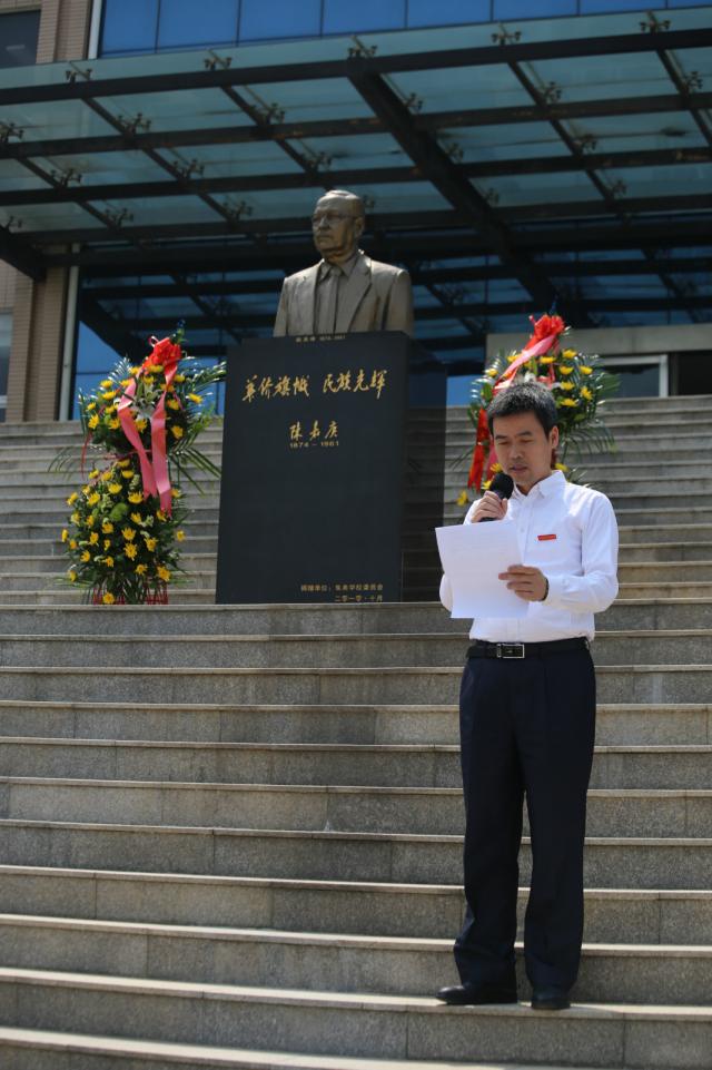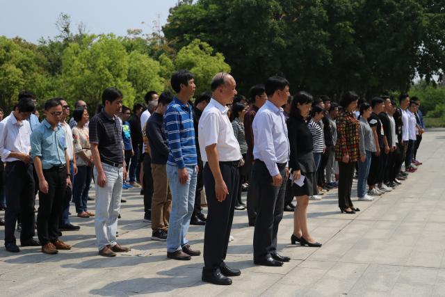 在传统节日清明节来临之际,院党委书记陈苏丽、院长昌萍、党委副书记汤忠民、副院长余云翼、副院长孙学耕与各系各部门师生代表100余人在翔安校区嘉庚雕像前,共同祭扫校主嘉庚先生并敬献花篮。整个祭扫仪式简短而庄重,师生们在校主铜像前列队、默哀、三鞠躬,最后绕像一圈。仪式由汤忠民主持。